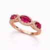 טבעת רובי מכסף טהור 925 בציפוי רוז גולד, משובצת זרקונים