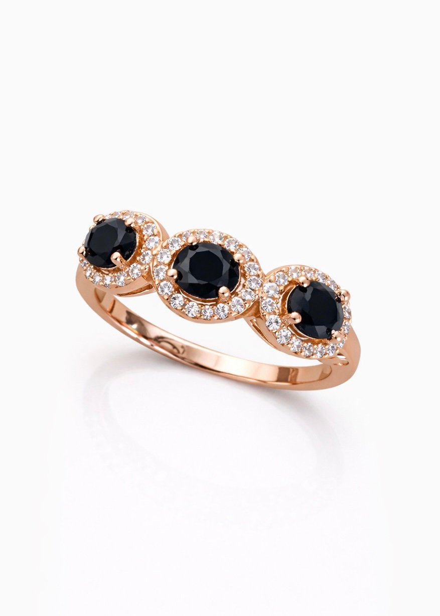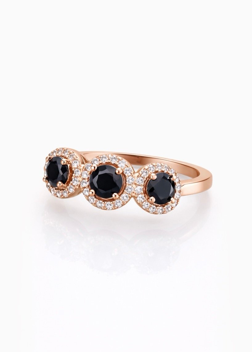 טבעת אוניקסים מכסף טהור 925 בציפוי רוז גולד, משובצת זרקונים