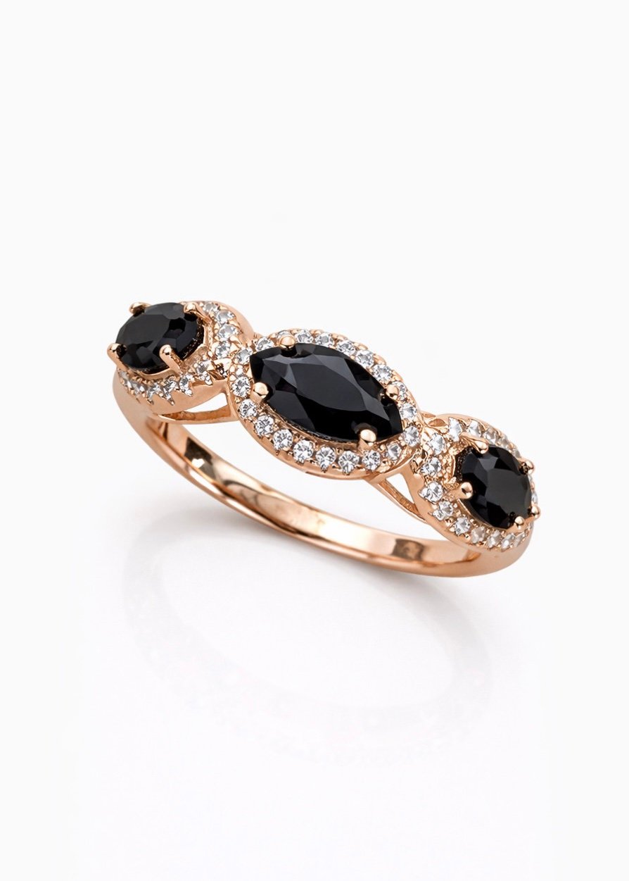 טבעת אוניקסים מכסף טהור 925 בציפוי רוז גולד, משובצת זרקונים