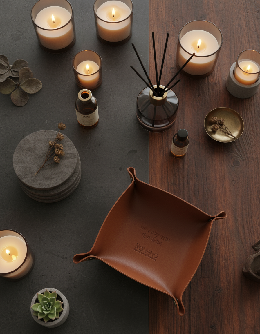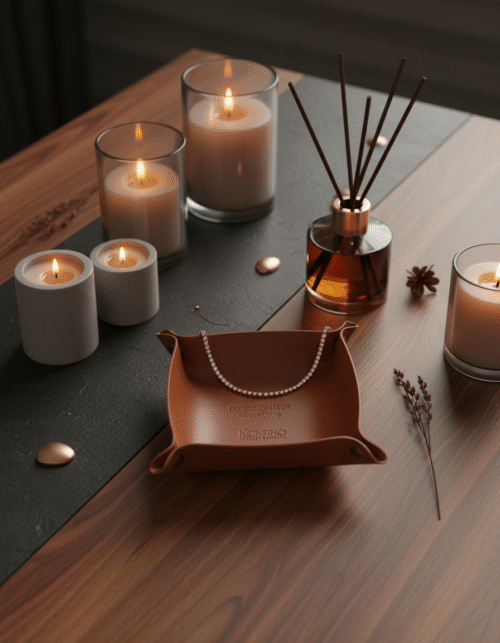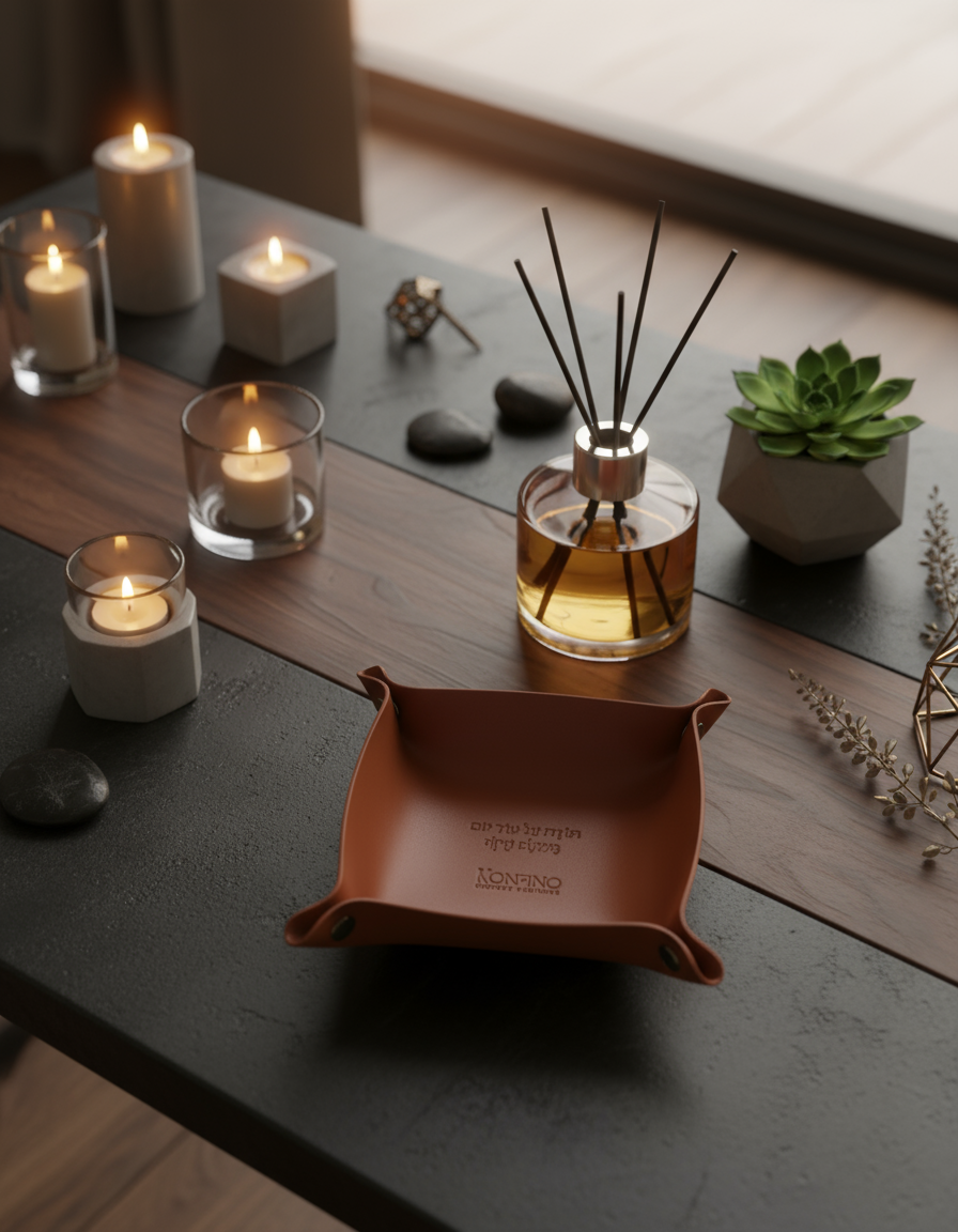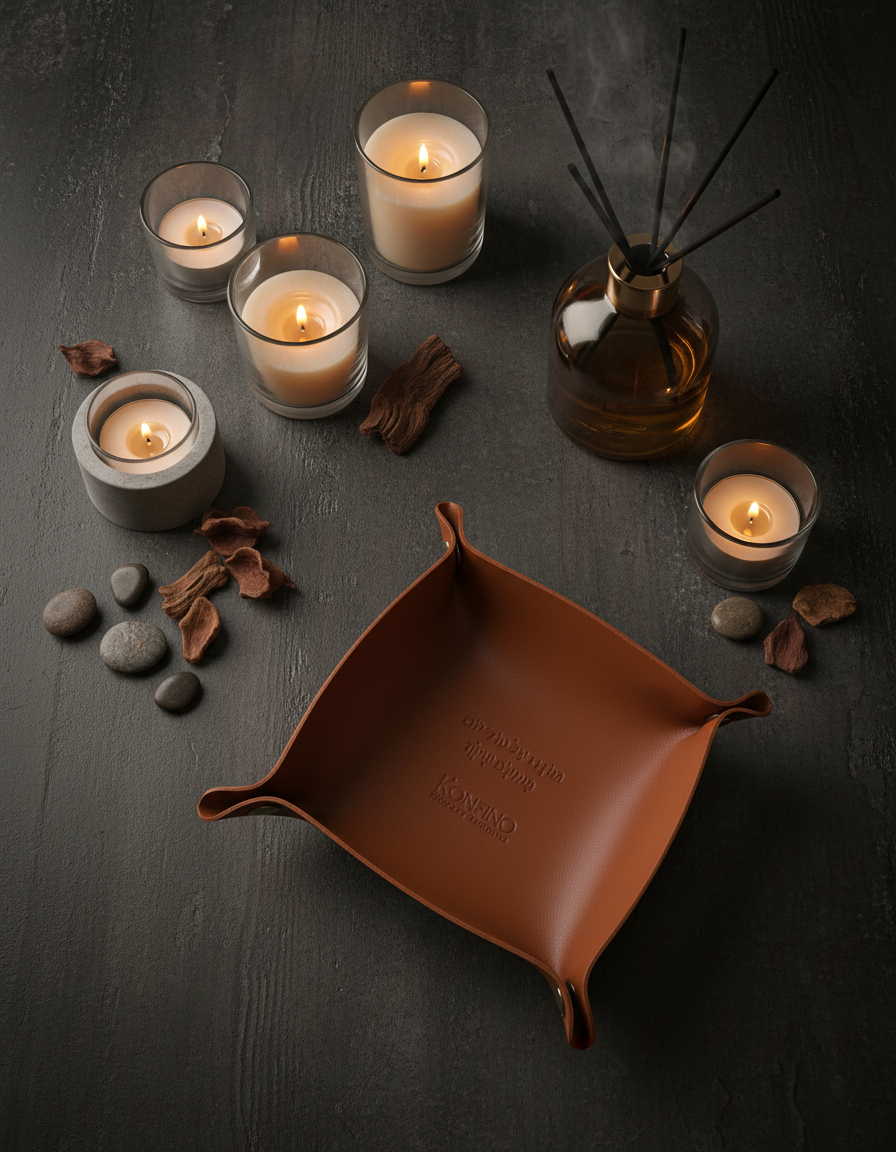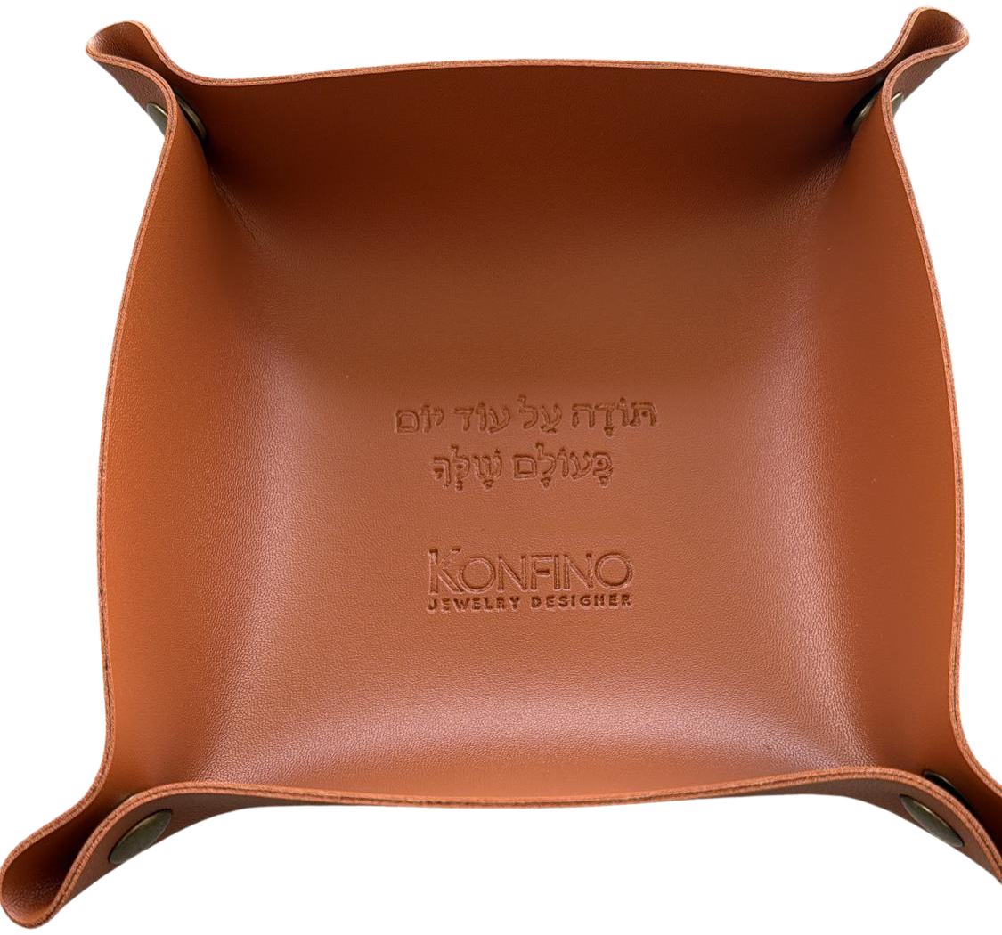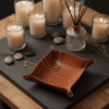 קערת עור יוקרתית בעבודת עיצוב מוקפדת, מושלמת להצגת תכשיטים ושמירתם במקום אחד.