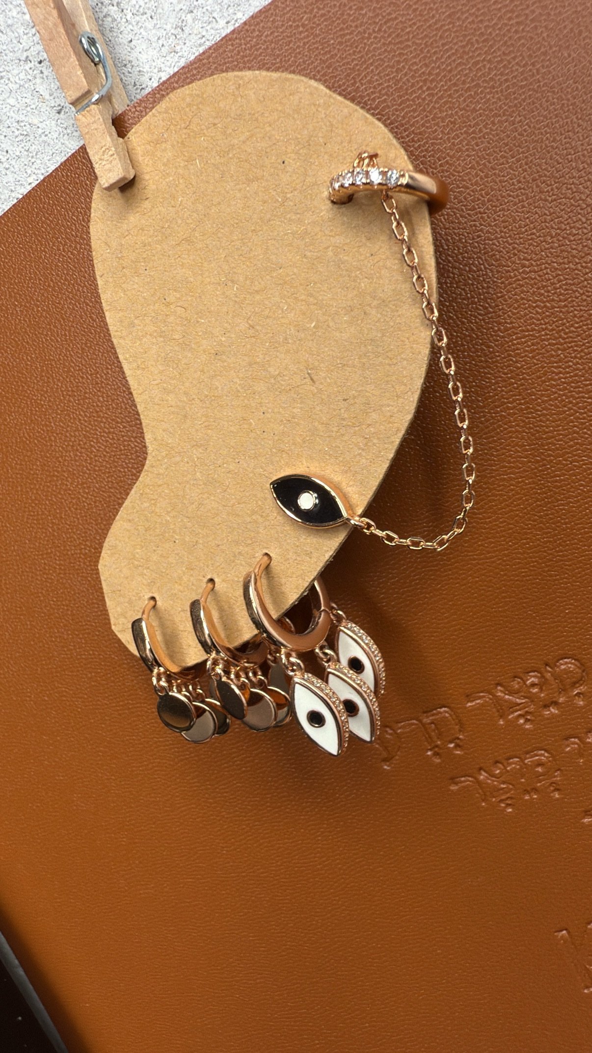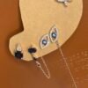 עגיל עין עם שרשרת הליקס, עגיל חישוק עיניים לבנות, זוג עגילי חישוק מטבעות. סהכ 4 עגילים.