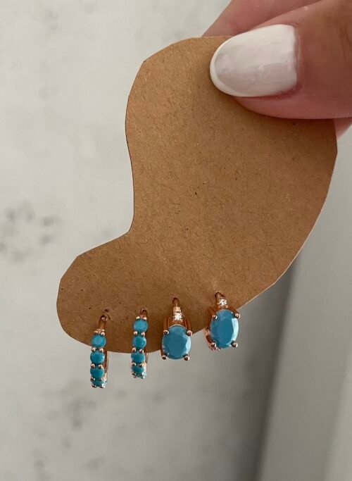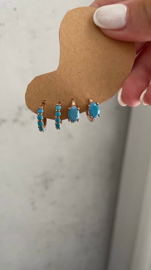 זוג חישוקים טורקיז, זוג עגילי חישוק עם אבן אובלית טורקיז, סהכ 4 עגילים.
