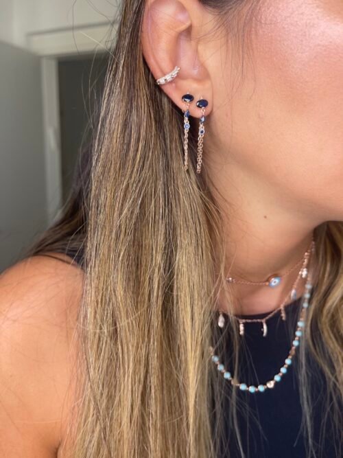 עגילי זרקונים כחולים עם שרשרת נופלת