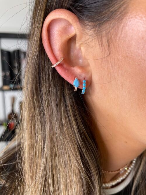 עגילי חישוק משובץ טורקיז