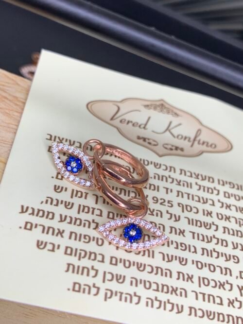 עגילי חישוק עם עין נופלת מכסף טהור 925- ציפוי רוז גולד, משובץ זרקונים.