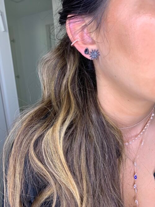 עגילי כוכבים זיקוקים שחורים מכסף טהור 925 בציפוי רודיום שחור, משובץ זרקונים.