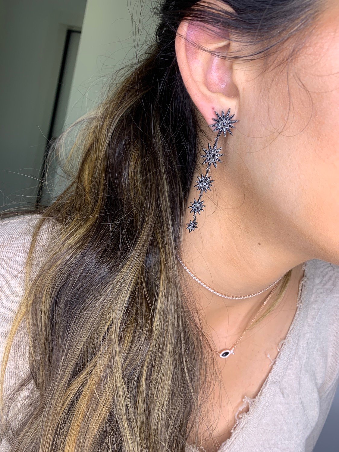 עגילי כוכבים זיקוקים(אחד כוכב צמוד, אחד כוכבים נופלים) מכסף טהור 925 / ציפוי רודיום שחור, משובץ זרקונים.