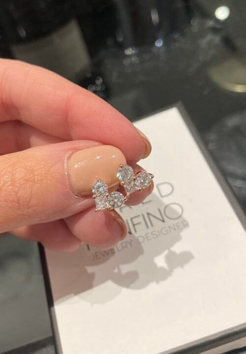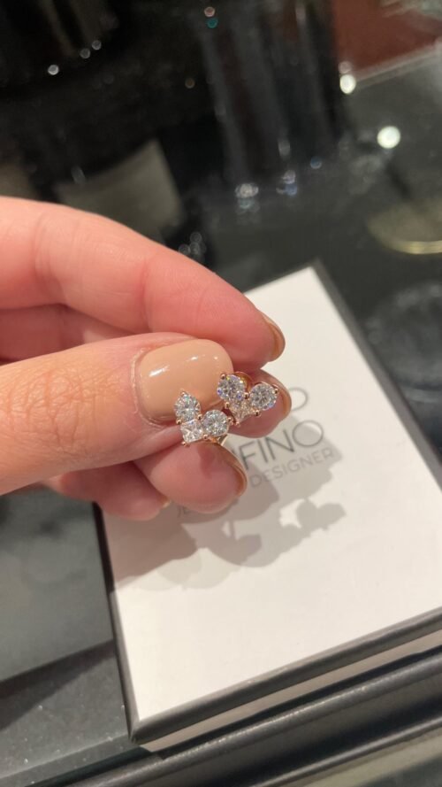 עגילי לב צמודים מכסף טהור 925, בציפוי זהב אדום 14K, משובץ זרקונים.