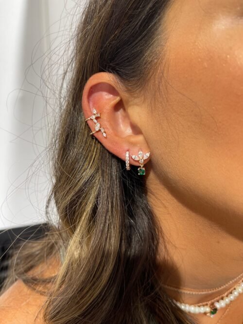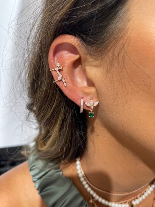 עגילי לוטוס עם זרקון ירוק נופל, מכסף טהור 925 בציפוי רוז גולד, משובץ זרקונים.