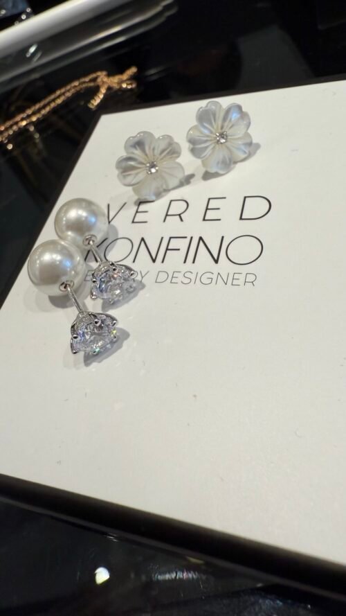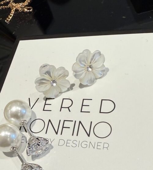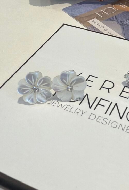עגילי פרח פנינה כסוף
