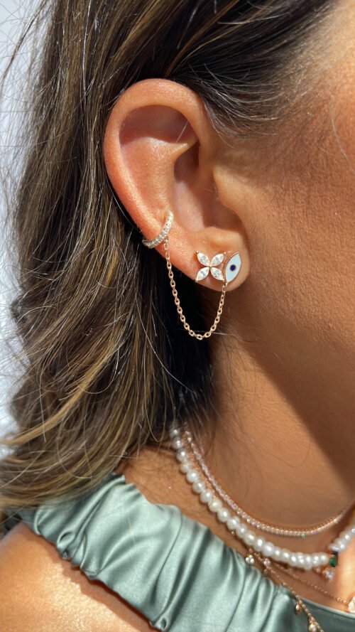 עגילי פרח צמודים, מכסף טהור 925 בציפוי רוז גולד, משובץ זרקונים.