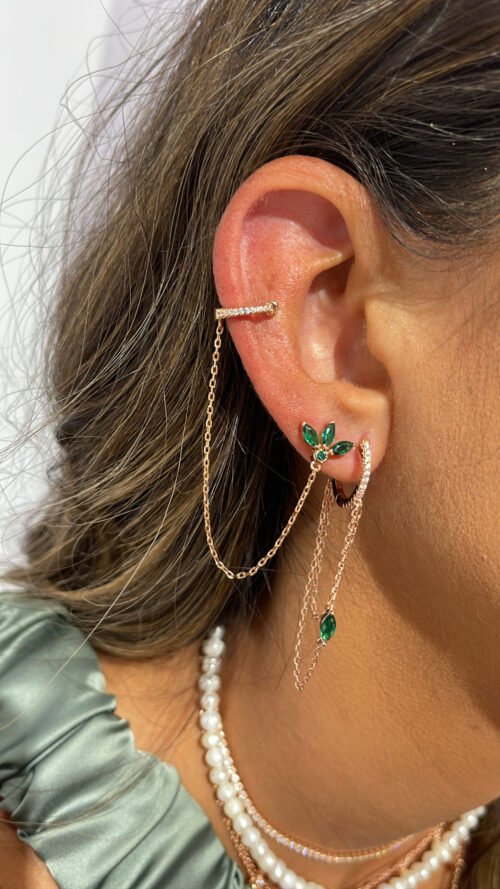 עגיל לוטוס ירוק עם שרשרת וחישוק הליקס