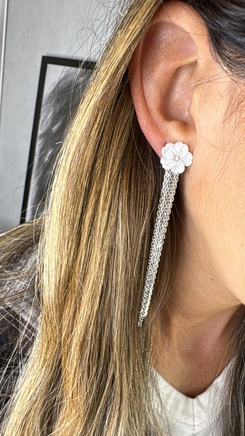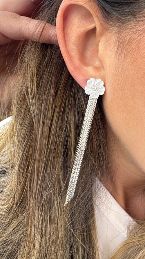 עגיל פרח פנינה ושרשראות נופלות