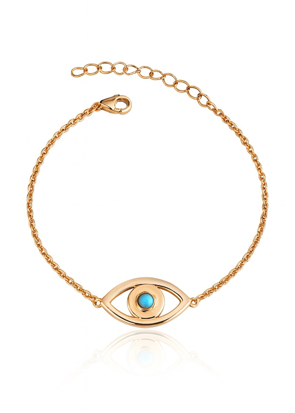 צמיד עין רוז אבן טורקיז מכסף טהור 925, בציפוי רוז גולד.