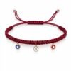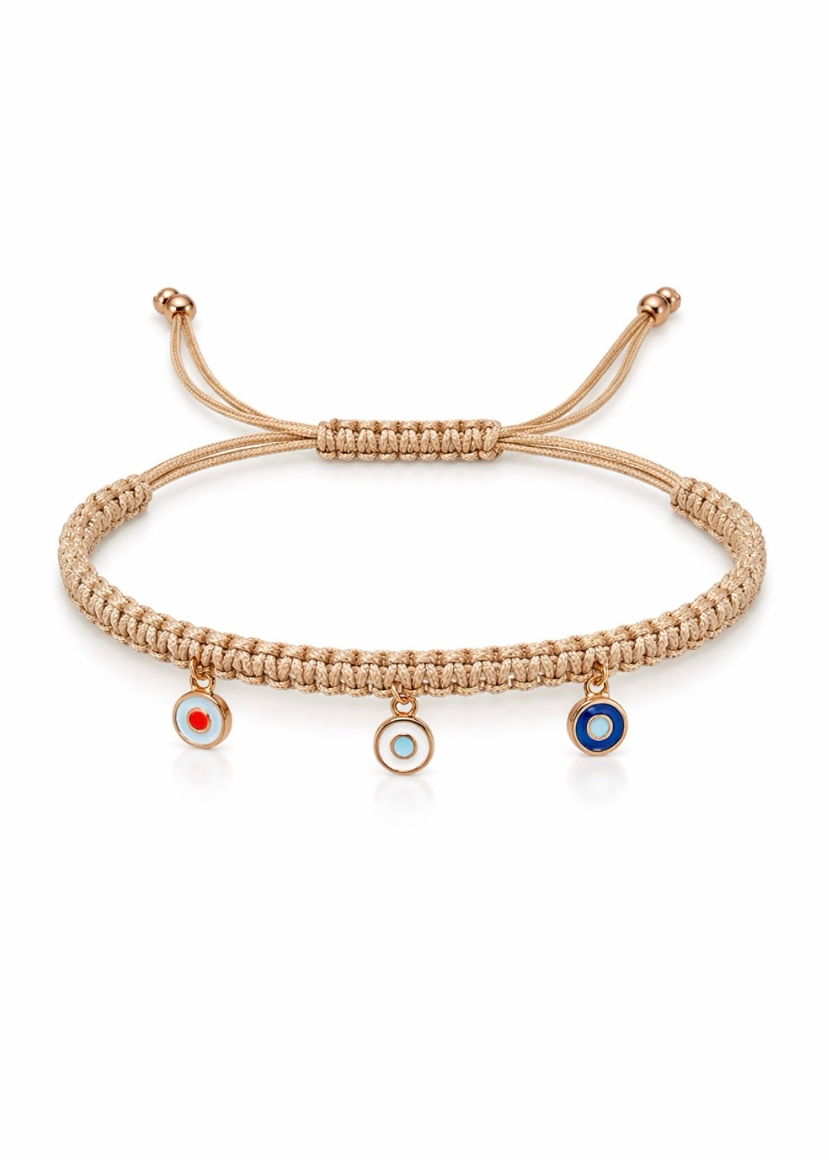 צמיד חוט טבעי רקום עם עיניים צבעוניות מכסף טהור 925, בציפוי רוז גולד.