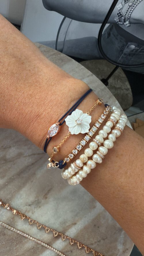 צמיד חוט כחול עם מרקיזה, מכסף טהור 925. משובץ זרקון.