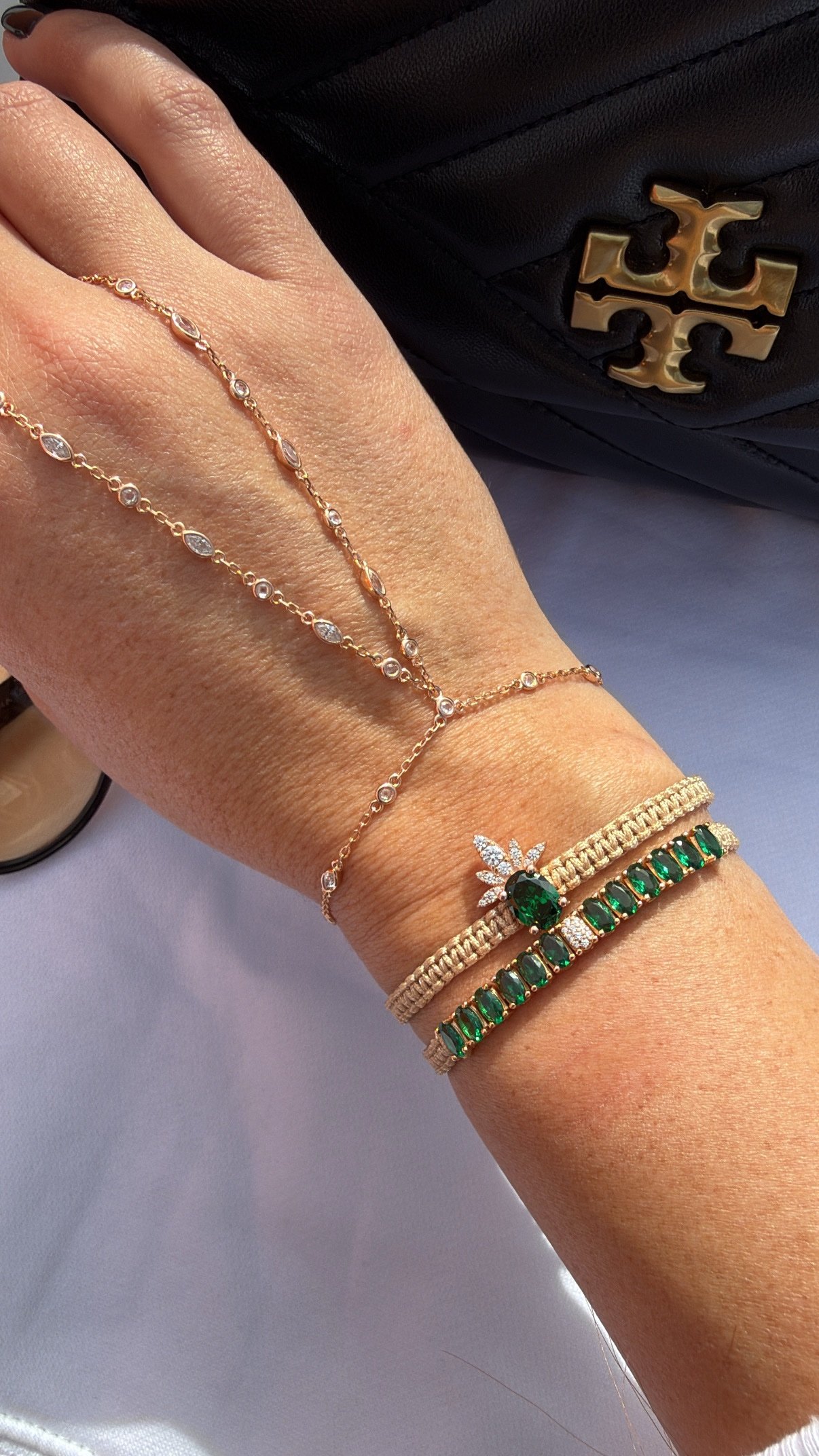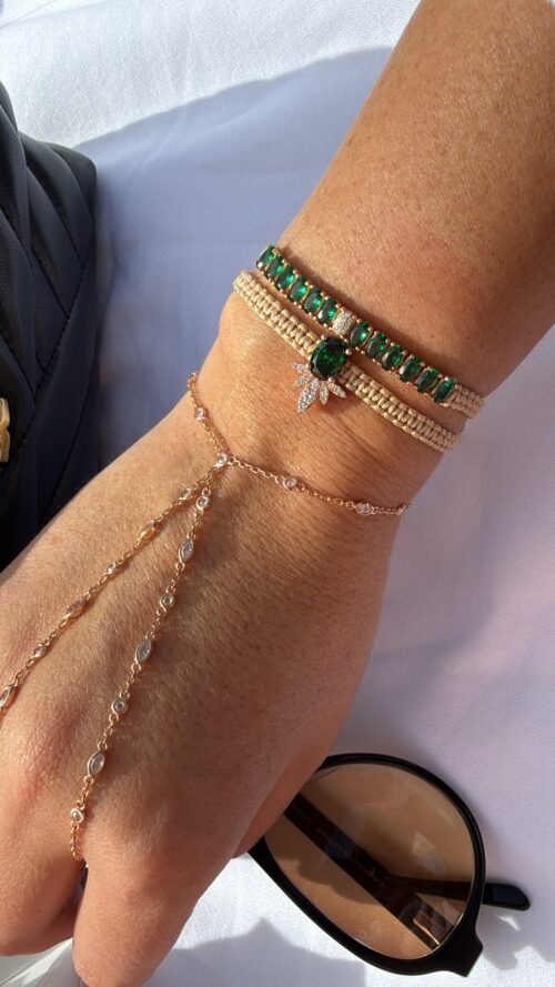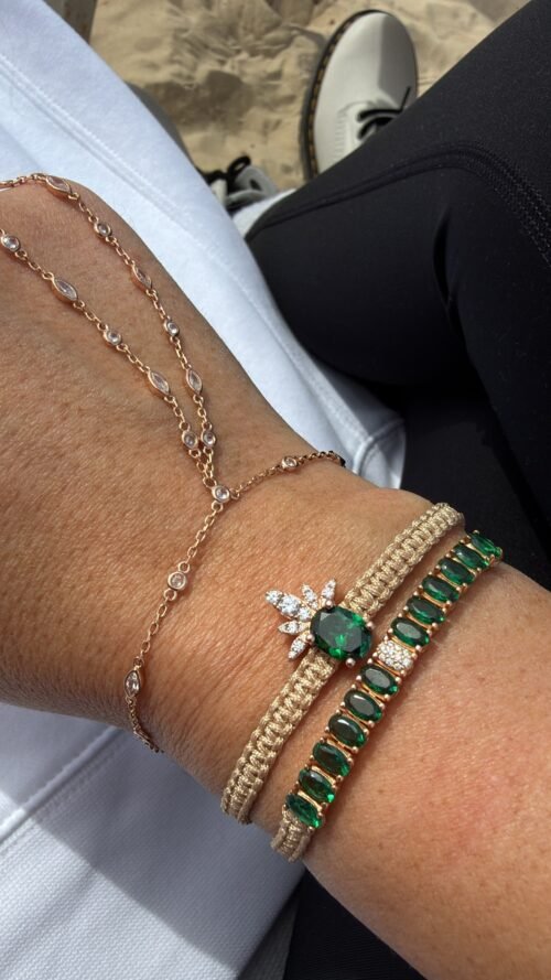 צמיד חוט עם טניס אמרלד משובץ