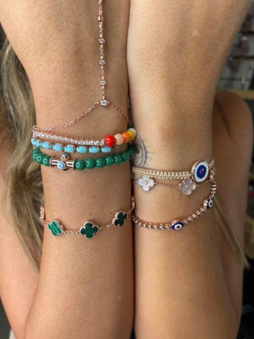 אורך הצמיד סטנדרטי ומתאים לכל מידה, נפתח ונסגר לפי היד.