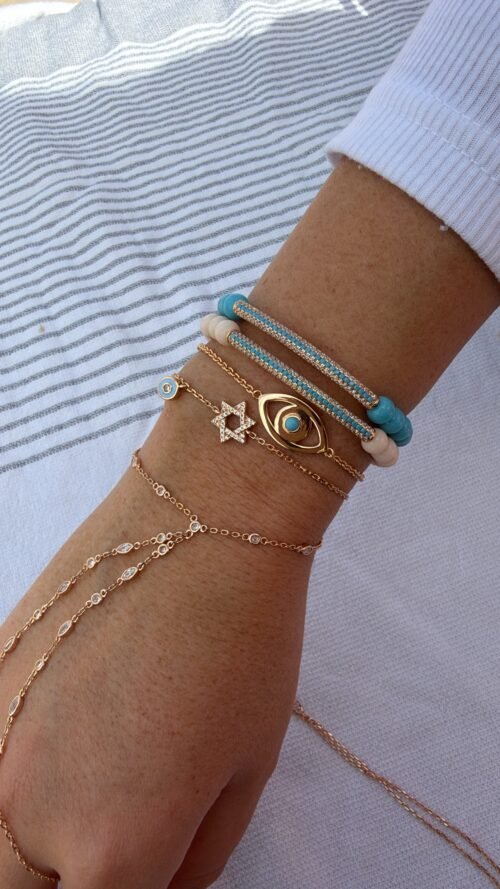 צמיד חרוזים כחולים עם פלטה משובצת טורקיז