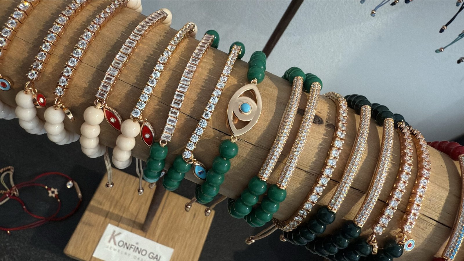 צמיד חרוזים ירוקים עם פלטה משובצת