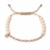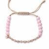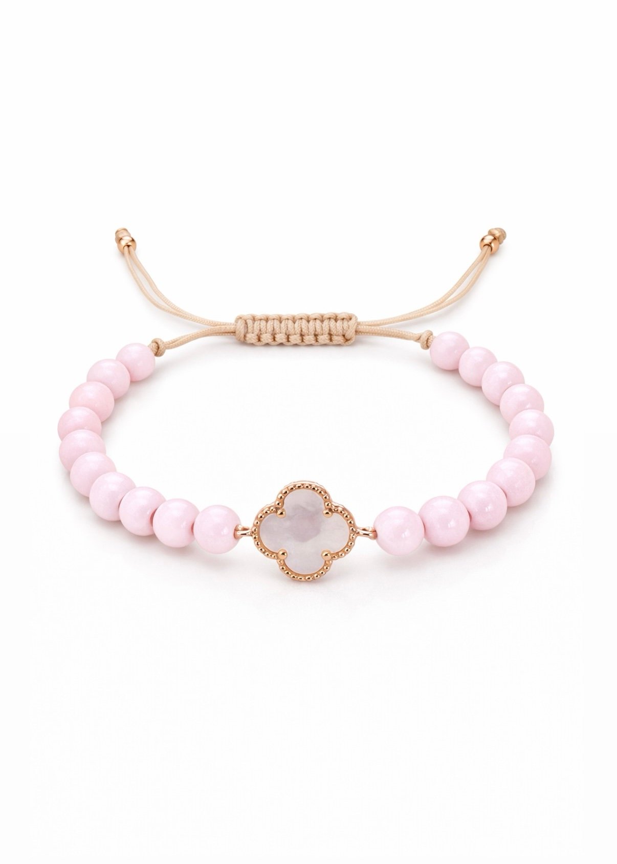 צמיד חרוזים ורודים עם תלתן מכסף טהור 925, בציפוי רוז גולד.