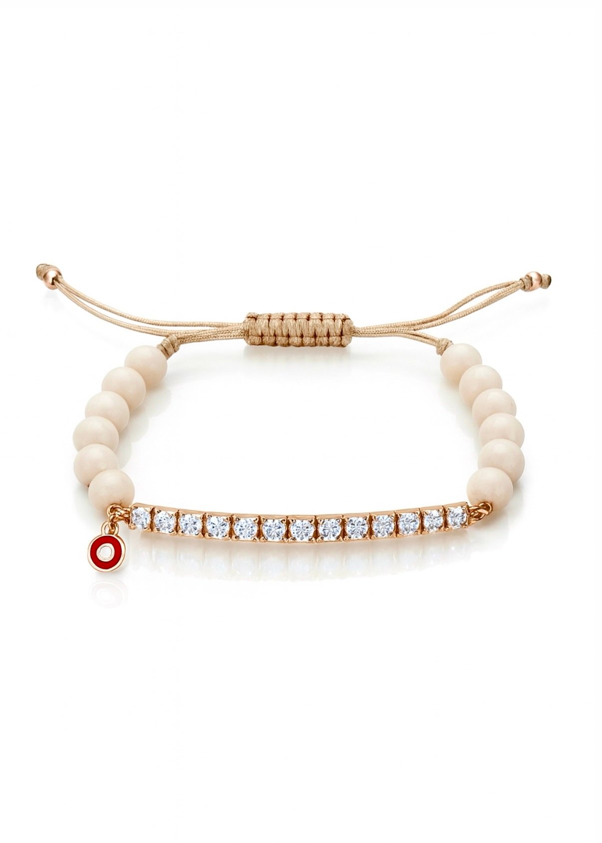 צמיד חרוזים ניוד עם טניס ועין נופלת מכסף טהור 925, בציפוי רוז גולד, משובץ זרקונים.