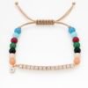 צמיד חרוזים צבעוניים עם טניס ועין נופלת מכסף טהור 925, בציפוי רוז גולד, משובץ זרקונים.