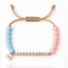 צמיד חרוזים לבנים עם חרוז עיניים צבעוניות משובץ מכסף טהור 925, בציפוי רוז גולד, משובץ זרקונים.