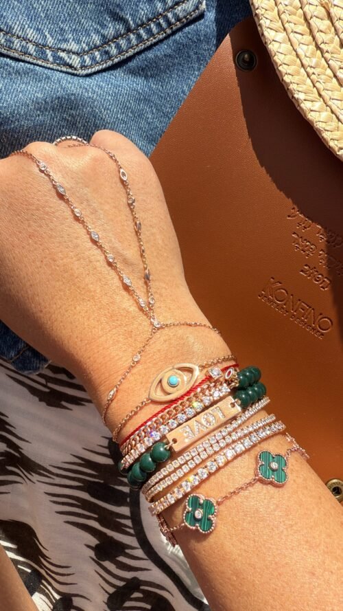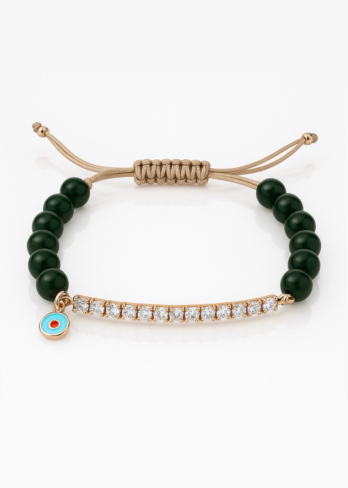צמיד חרוזים ירוקים עם טניס ועין נופלת