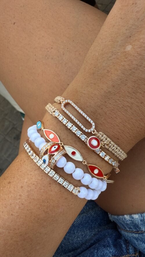 צמיד חרוזים לבנים עם חרוז עין צבעונית