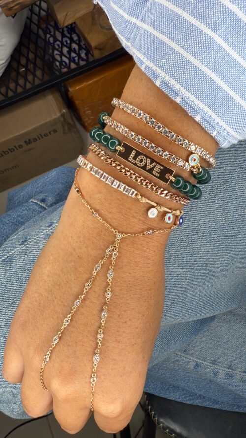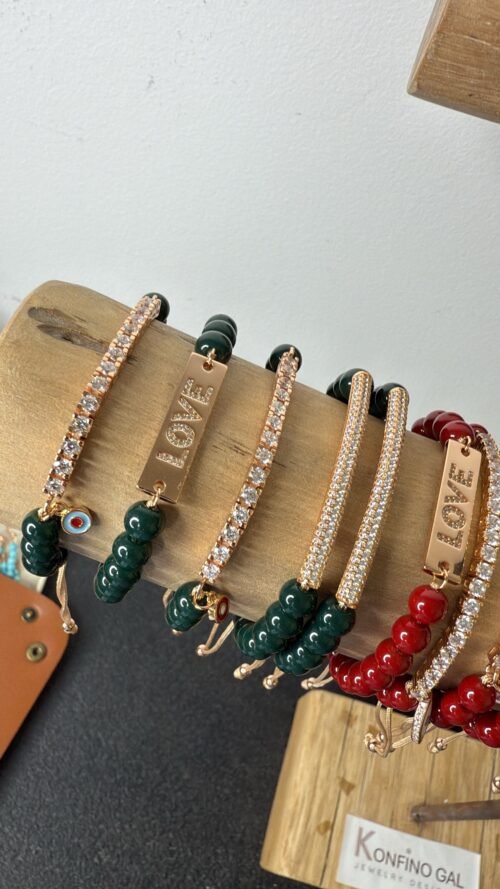 צמיד חרוזים ירוק כהה עם פלטה LOVE