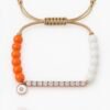 צמיד חרוזים לבן תכלת עם פלטה משובצת