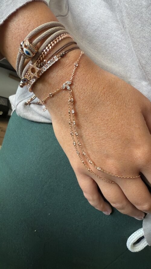 צמיד טבעת ג׳אדי לוטוס מכסף טהור 925, בציפוי רוז גולד. משובץ זרקונים.