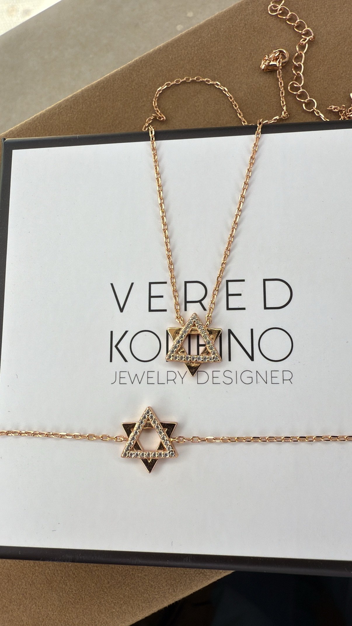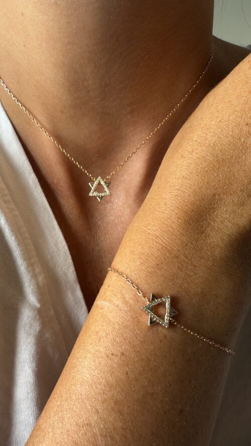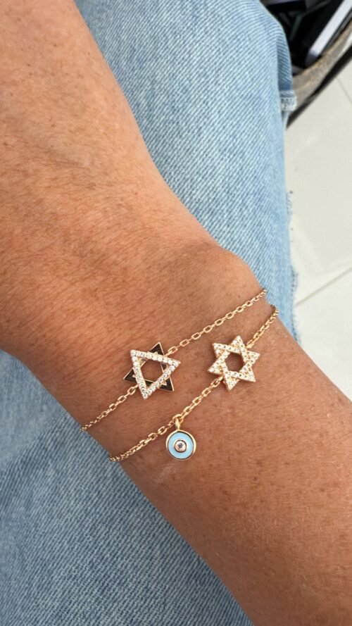 צמיד מגן דוד חצי משובץ מכסף טהור 925, בציפוי רוז גולד, משובץ זרקונים.