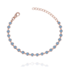 צמיד עין אמייל תכלת מכסף טהור 925 בציפוי רוז גולד. אורך הצמיד 18 ס״מ ומגיע עם תוספת הארכה של 3 ס״מ.