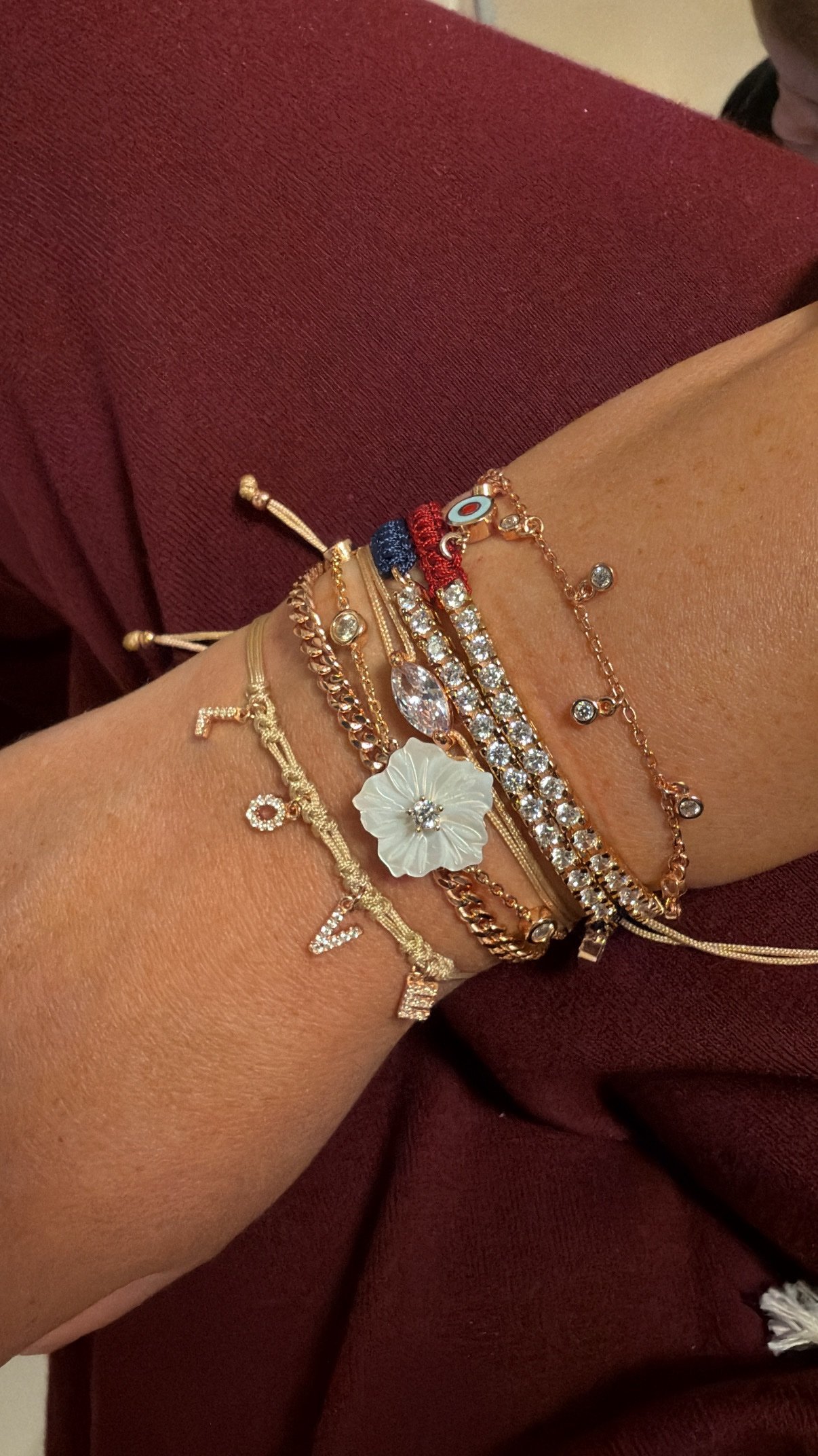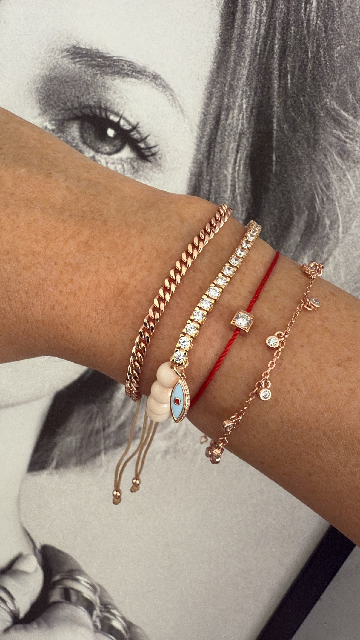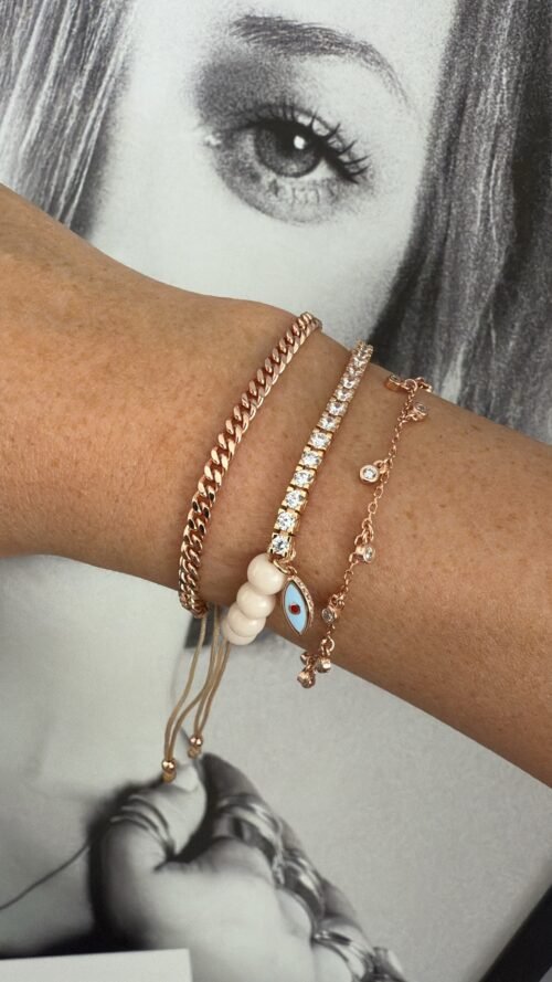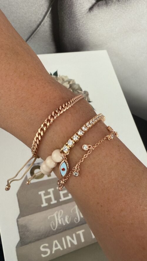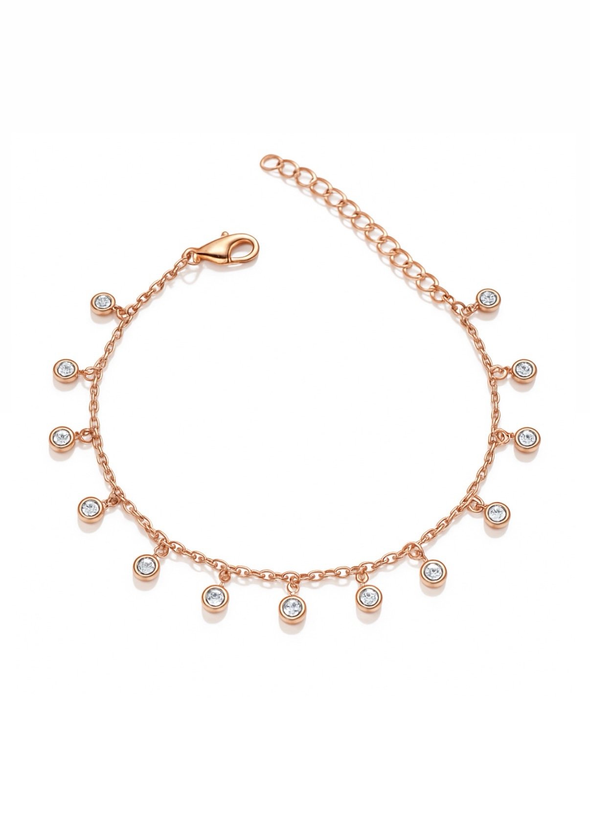 צמיד זרקונים נופלים מכסף טהור 925 בציפוי רוז רוז, משובץ זרקונים.