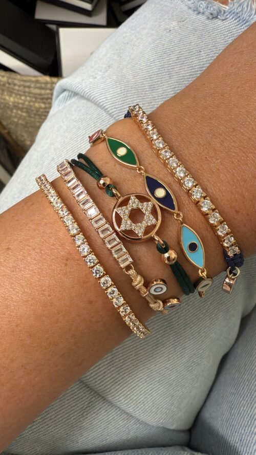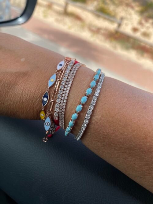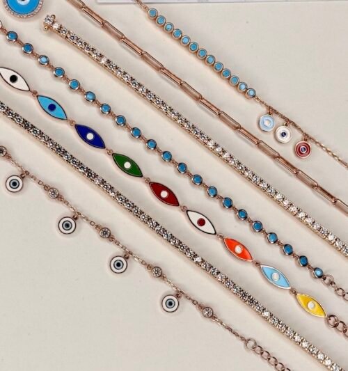 צמיד עיניים אמייל צבעוניות מכסף טהור 925, בציפוי רוז גולד.