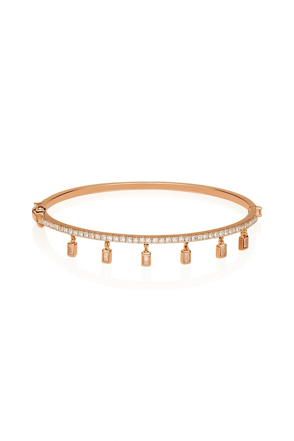 צמיד קשיח מלבנים נופלים מכסף טהור 925/ציפוי רוז גולד, משובץ זרקונים