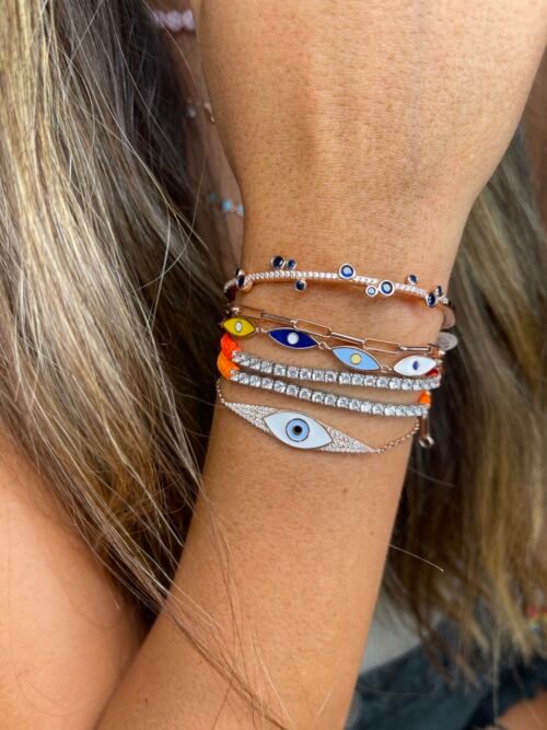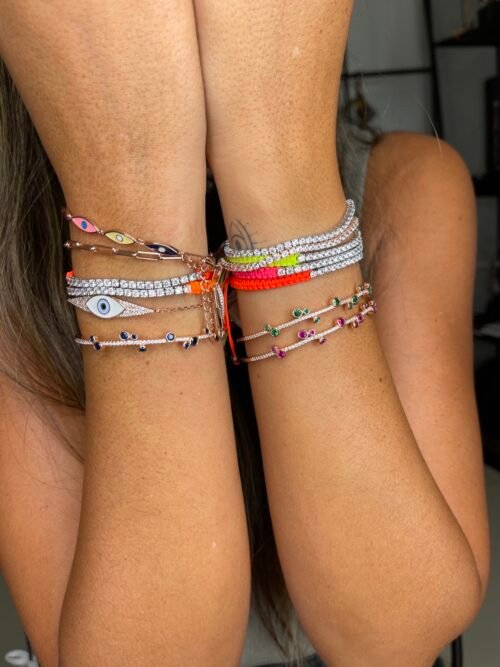 צמיד קשיח עיגולים רובי/כחול/ירוק