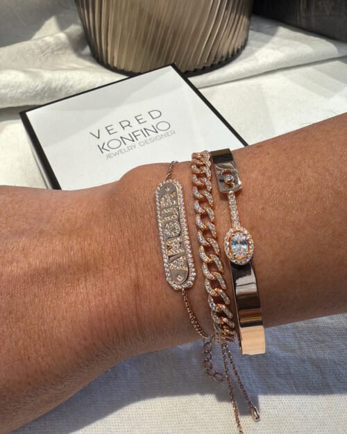 צמיד קשיח רוז משובץ מכסף טהור 925, בציפוי רוז גולד.