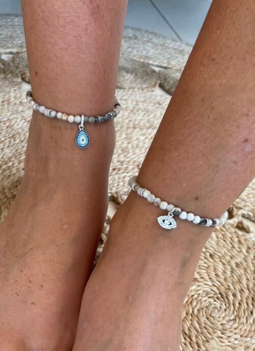 צמיד רגל חרוזים בשילוב עין