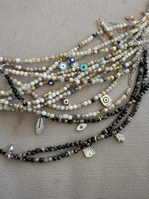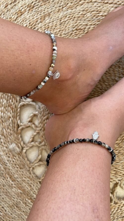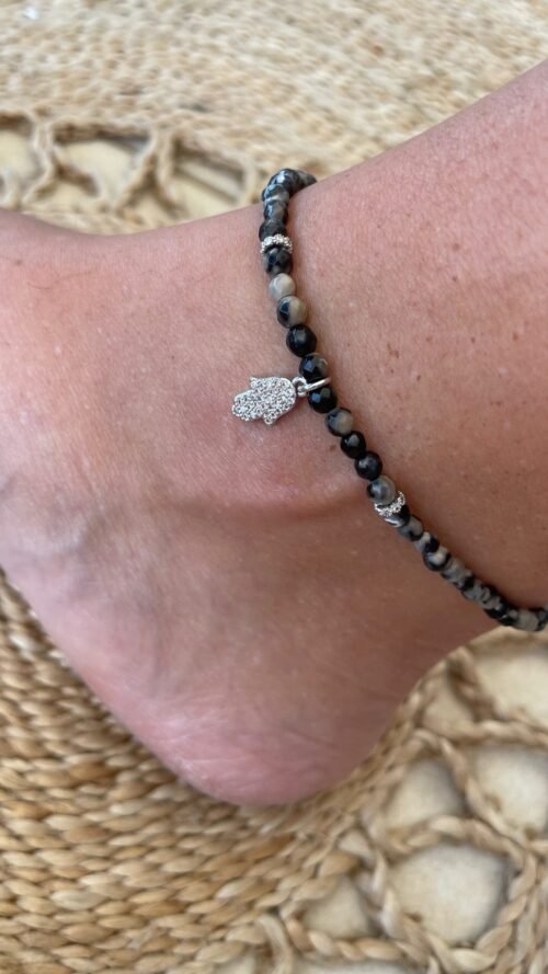צמיד רגל חרוזים שחורים בשילוב חמסה