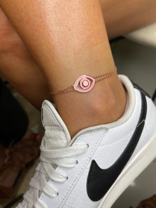צמיד רגל עין אמייל מכסף טהור 925 בציפוי רוז גולד.