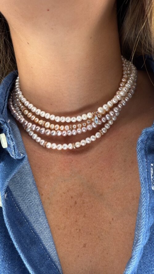 שרשרת פנינים עם עין קטנה נופלת