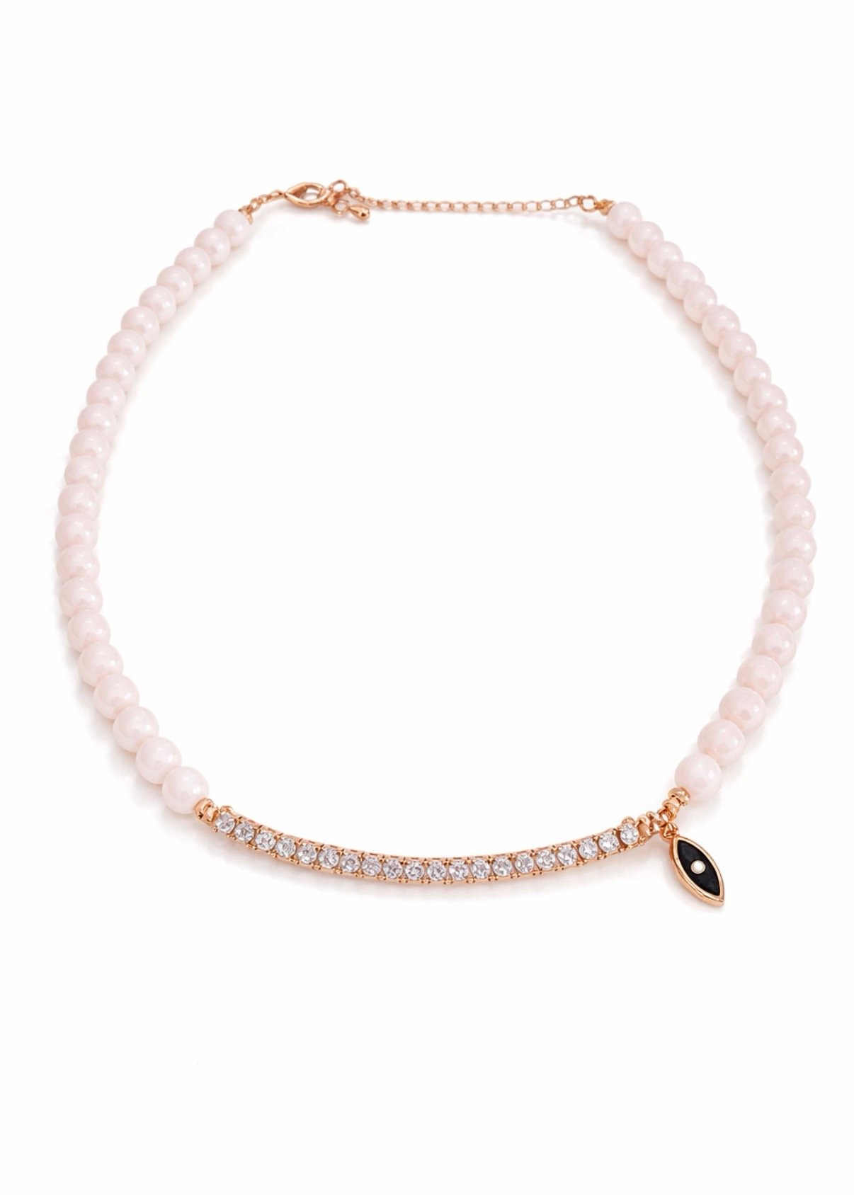 שרשרת חרוזים ניוד בשילוב טניס ועין נופלת, מכסף טהור 925 בציפוי רוז גולד, בשיבוץ זרקונים.