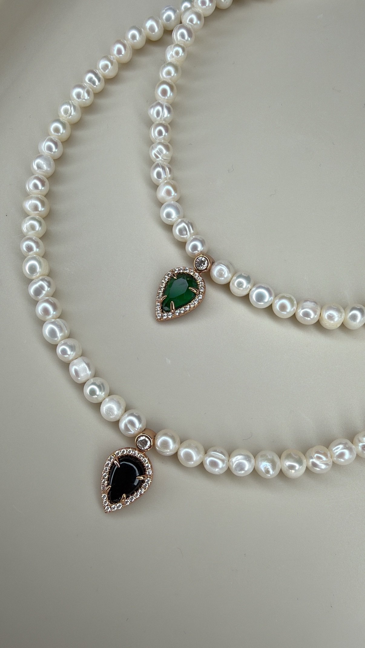 שרשרת פנינים עם טיפה ירוקה