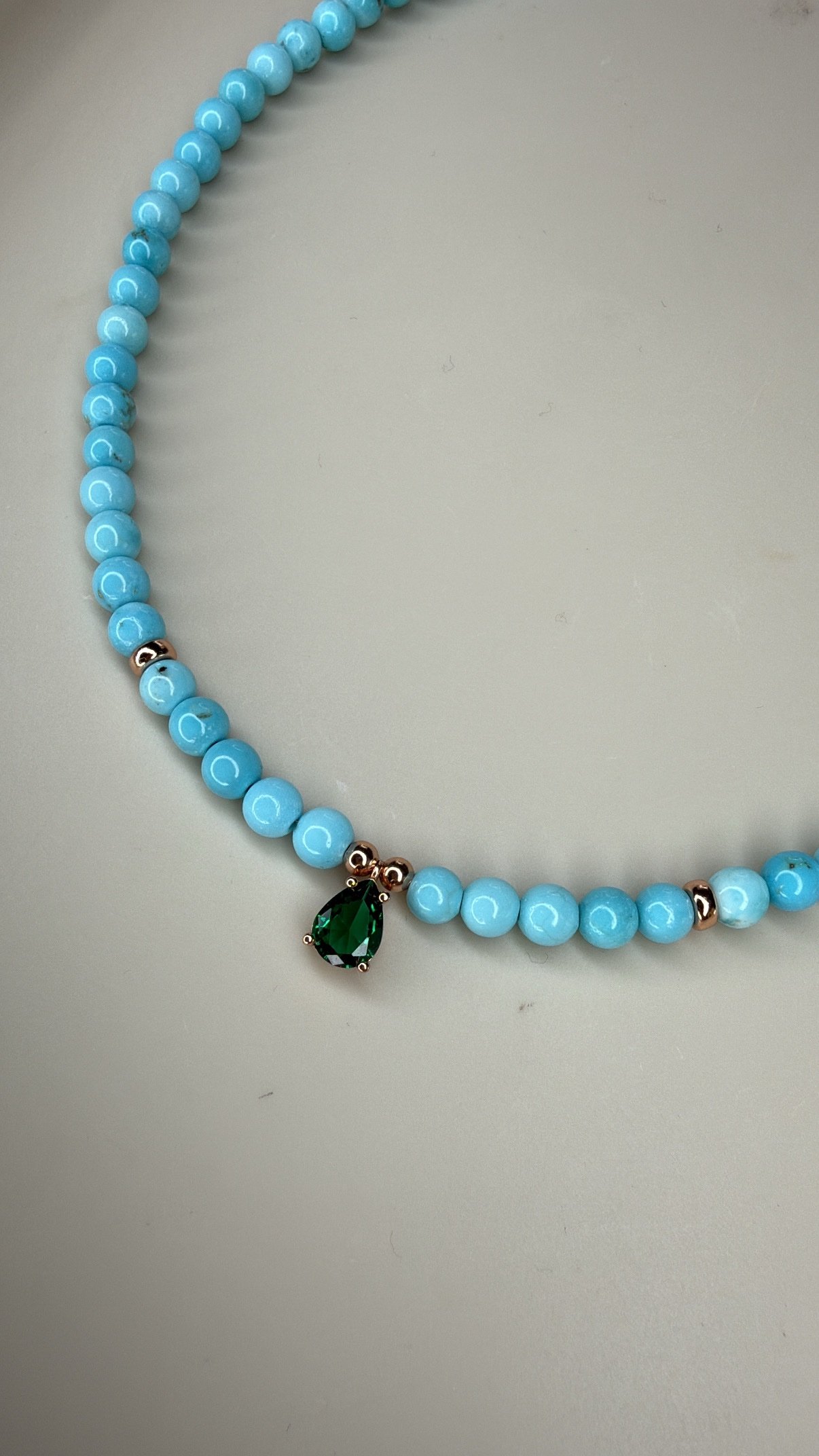 שרשרת חרוזים טורקיז בשילוב טיפה אמרלד