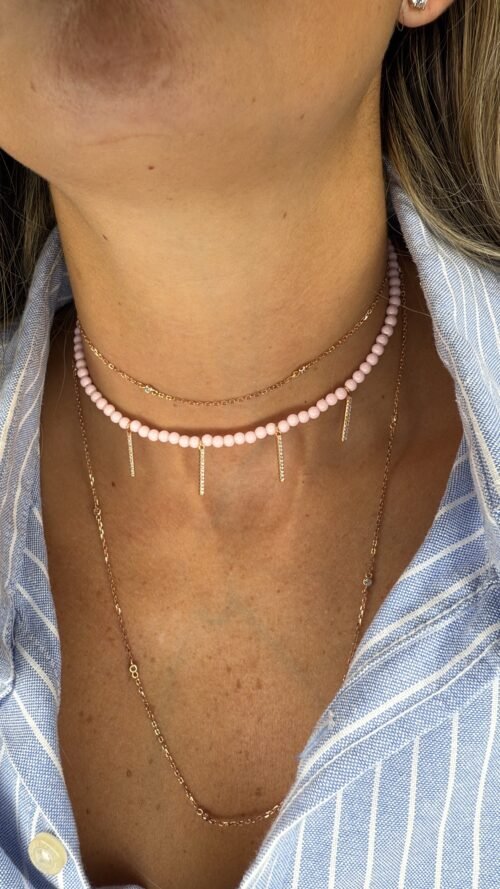 שרשרת חרוזים ורודים עם עמודים משובצים