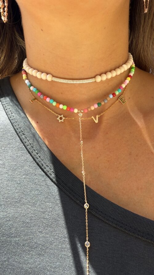 שרשרת קולר חרוזים ניוד עם פלטה משובצת