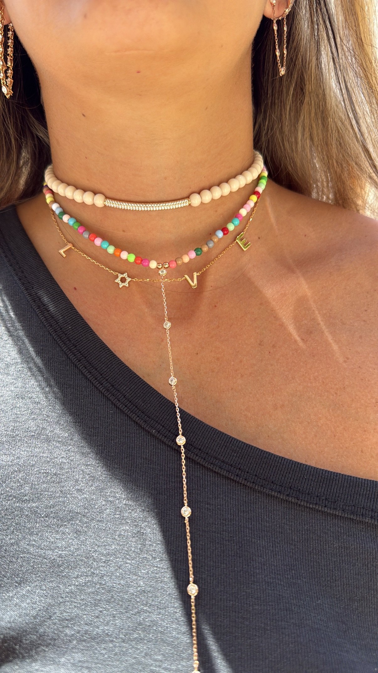אורך השרשרת 34 סמ ומגיעה עם תוספת לולאות הארכה 3 סמ.